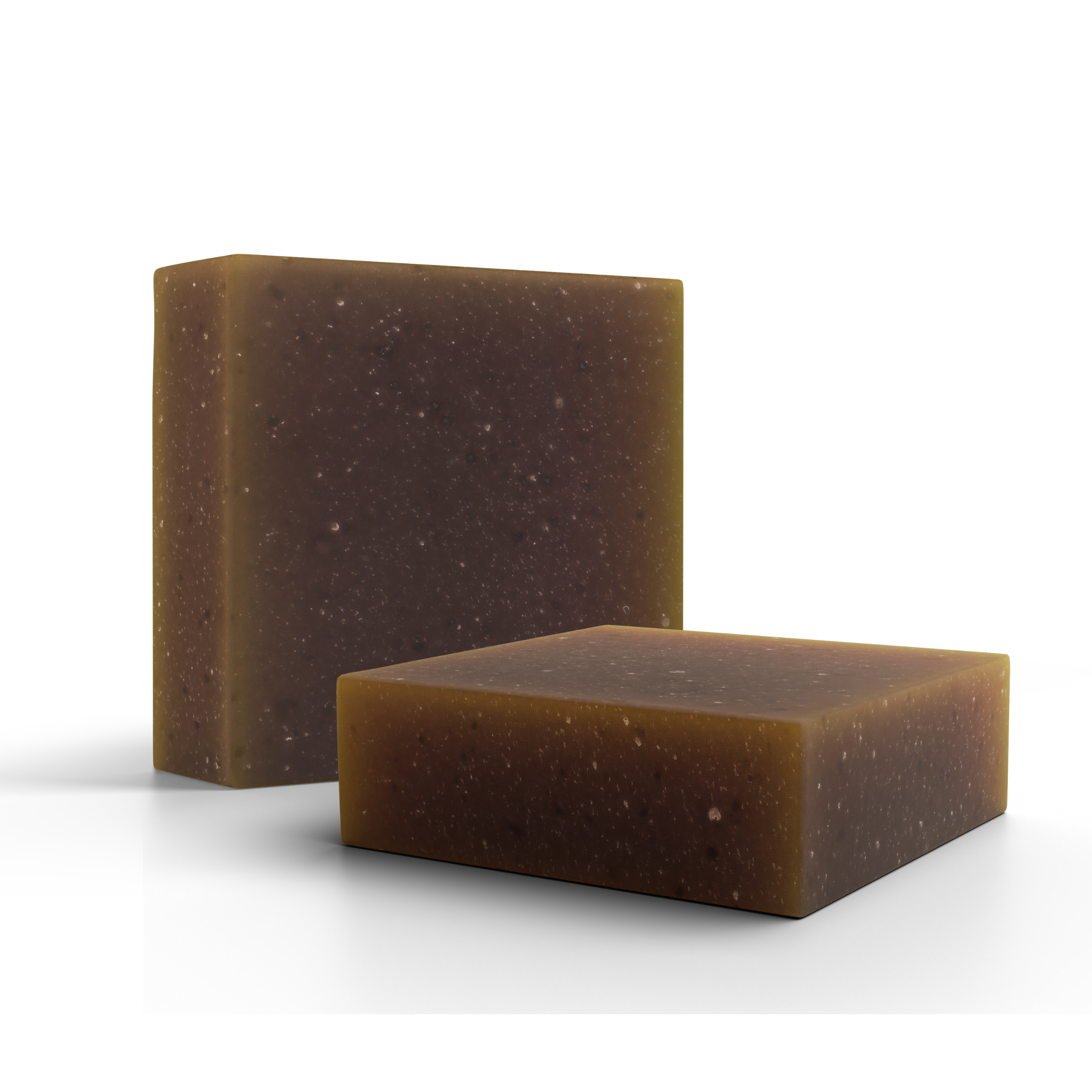 Burnt Barrel Rum: Saponified oils (olive oil, coconut oil, shea butter, cocoa butter and castor oil) brewed espresso coffee, fragrance oil, ground coffee beans, kaolin clay, sea salt.